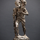 Bronze argenté représentant Saint Christophe portant l’Enfant Jésus, conçu comme mascotte automobile à l’aube de l’ère automobile.